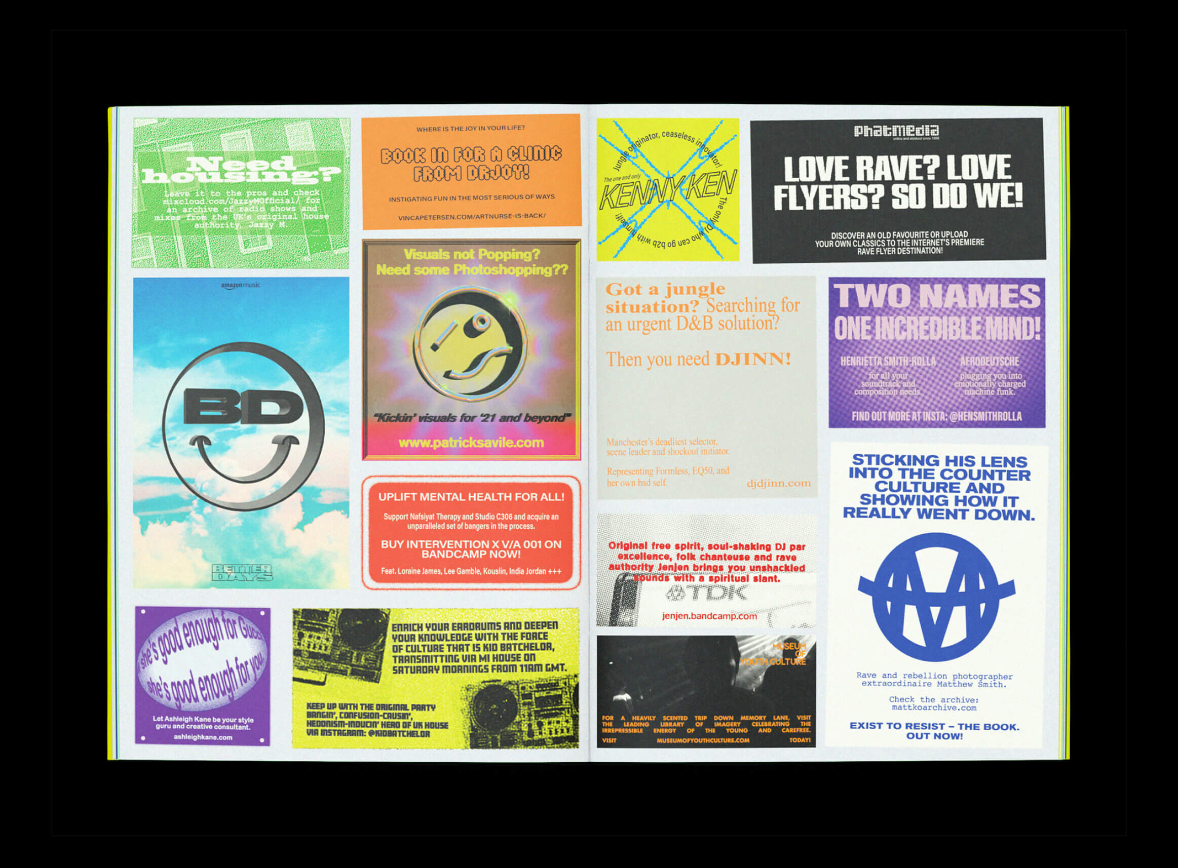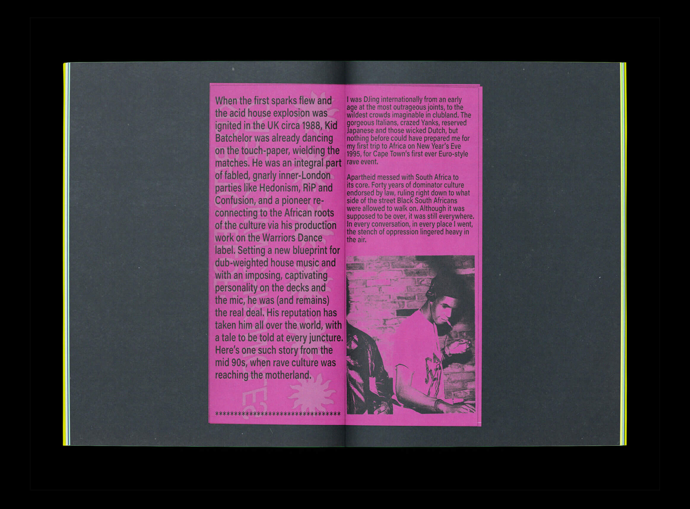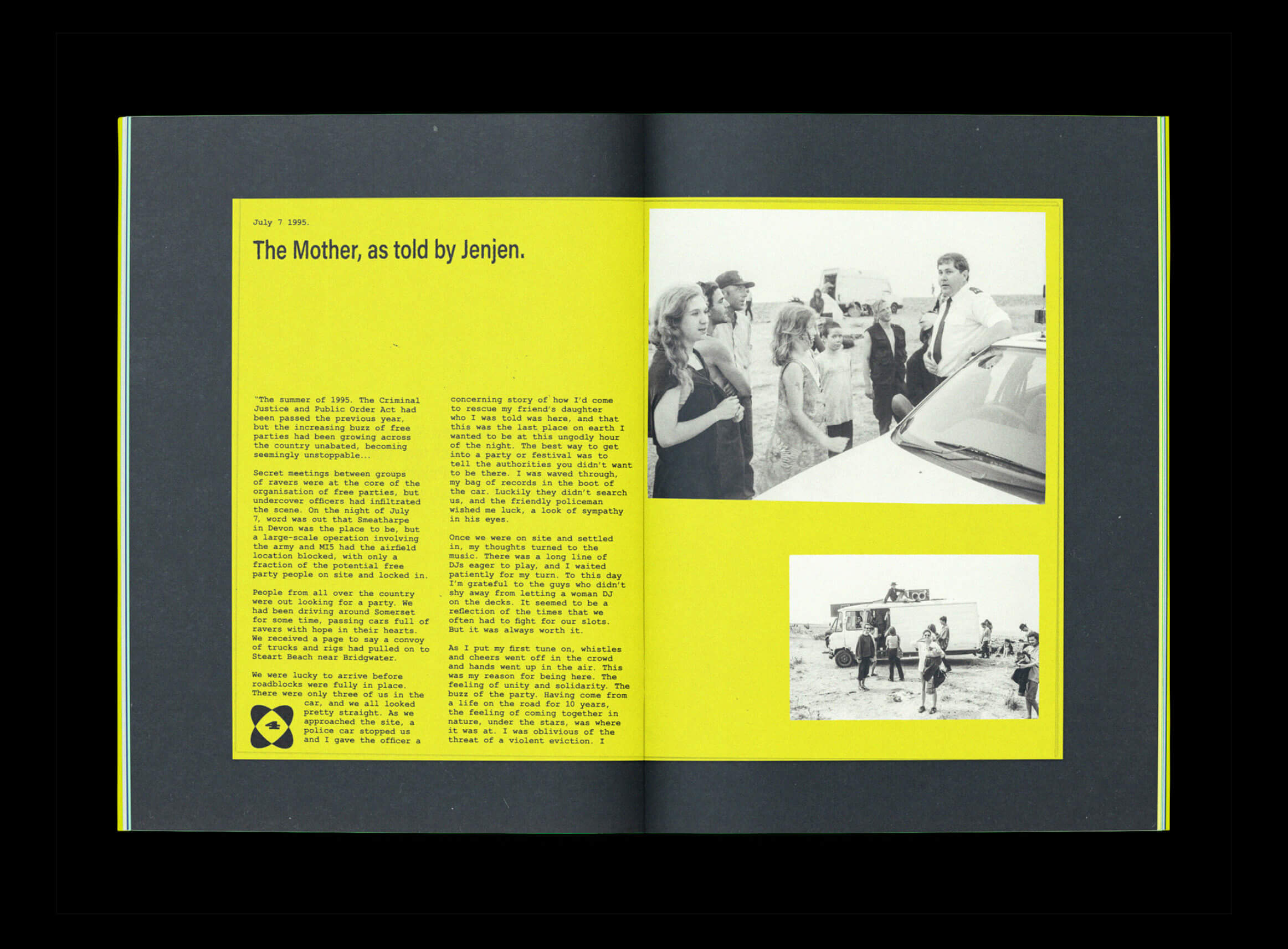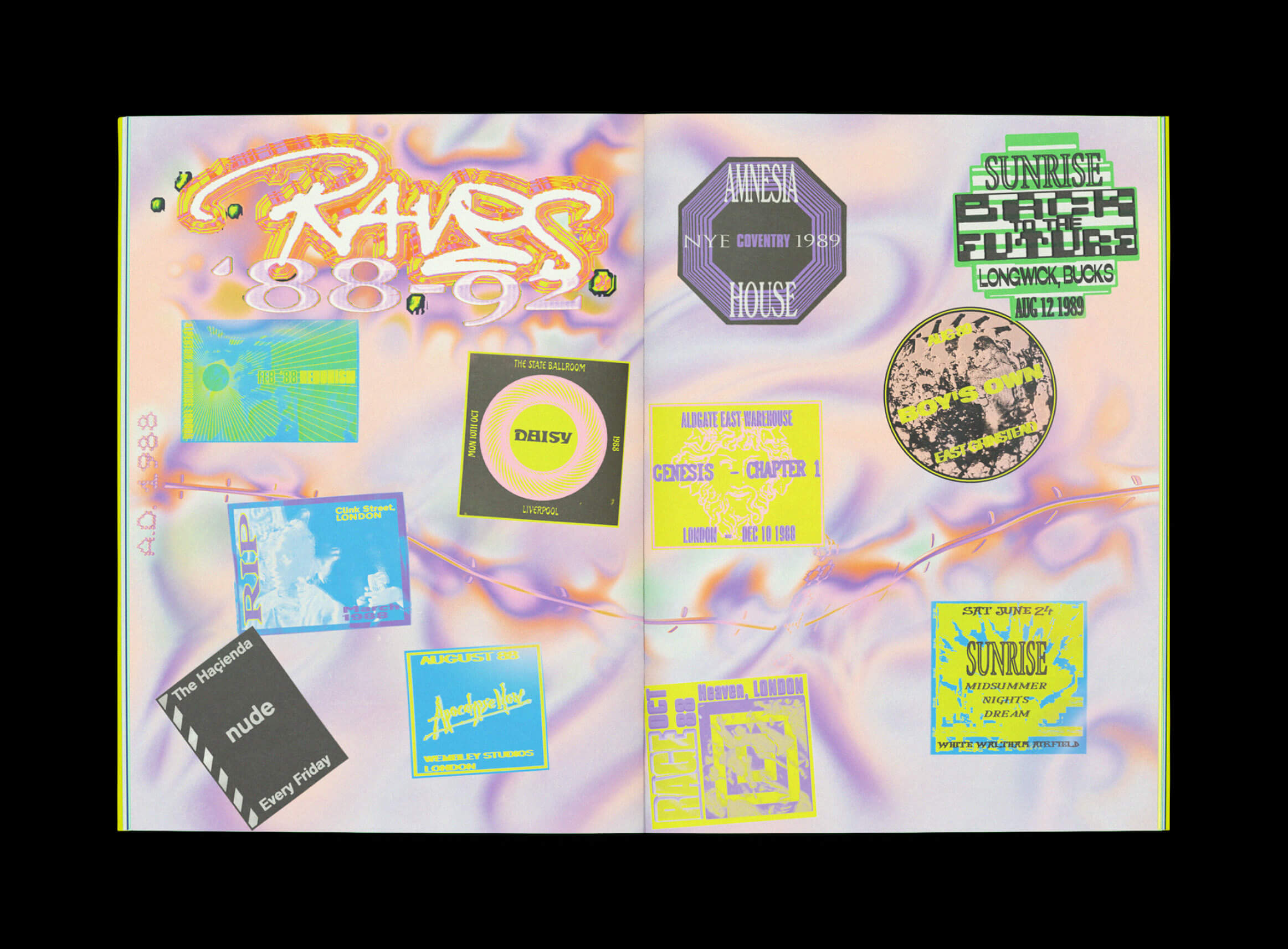 To reflect the raw energy of rave culture, we crafted a colour palette inspired by the era, and a format that was reminiscent of zines and lo-fi media.